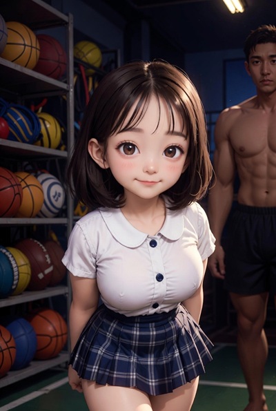 พี่ตั้มเดินเข้ามา ล็อกประตูห้องเก็บอุปกรณ์แน่นหนา แล้วยิ้มเจ้าเล่ห์ เดินตรงไปกอดฟ้าจากด้านหลัง มือใหญ่ล้วงเข้าเสื้อกีฬาบีบหน้าอกอวบแรง ๆ ฟ้าครางกลั้น “อ๊ะ…พี่ตั้มคะ…เบา ๆ สิ เดี๋ยวครูกีฬาได้ยิน” พี่ตั้มกระซิบ “ครูกลับไปแล้ว…ครางเบา ๆ นะเด็กตัวเล็ก”